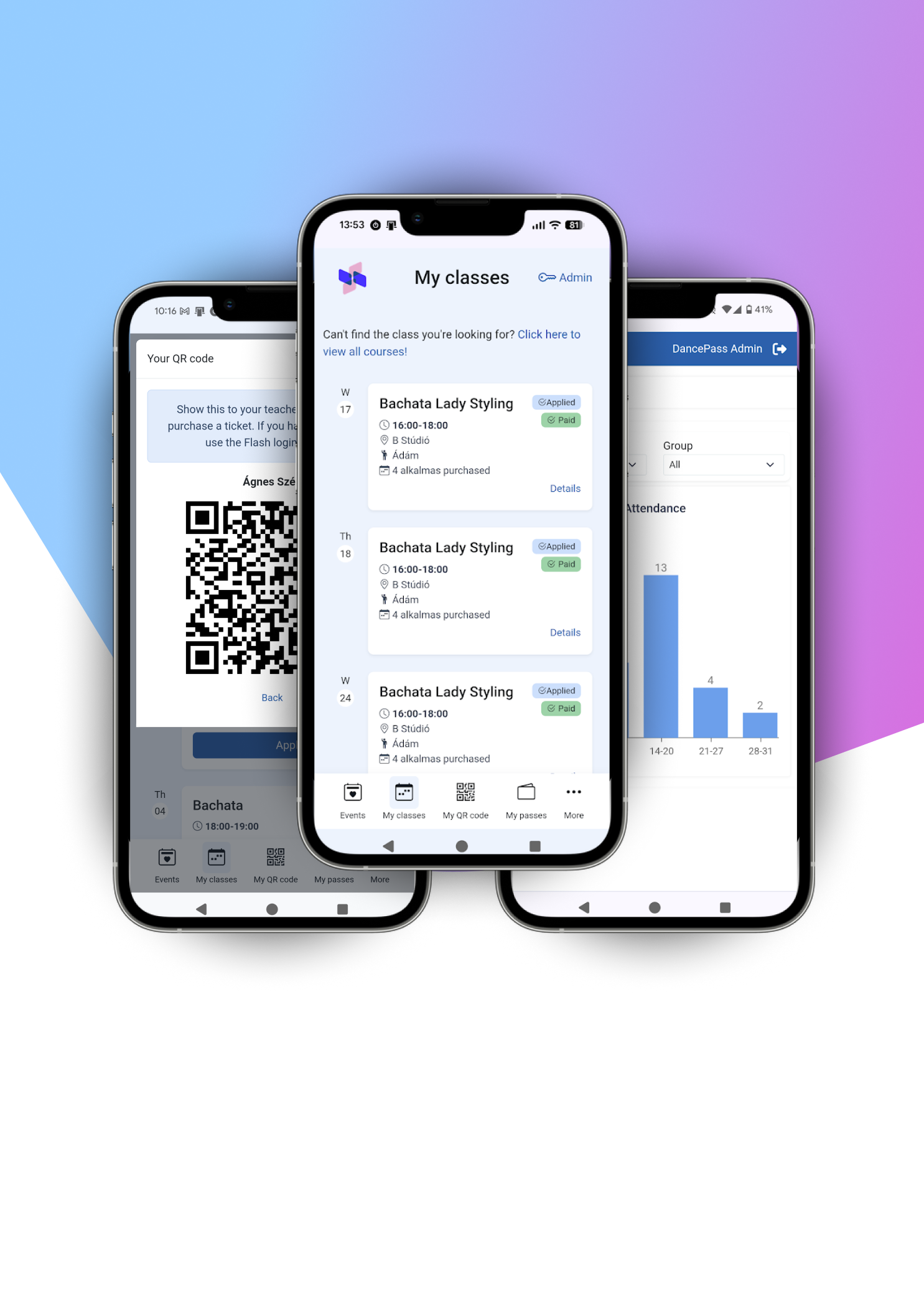 ✅ A DancePassnél nem szükséges lezárni az órákat vagy utólag adminisztrálni, a bérletekről valós időben vonjuk le az alkalmakat.
